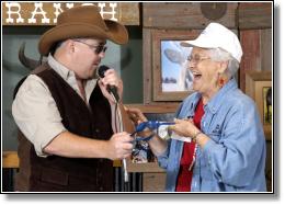 | Our Western Style Banquet Hall is a great setting for your chuckwagon dinner, complete with tin plate and mug, bandana napkin and spoon. Sit down to the best Texas BBQ you'll ever eat. Follow up your chuckwagon dinner with some of the area's best performers entertaining your group with music, comedy and a whole lot of fun! |